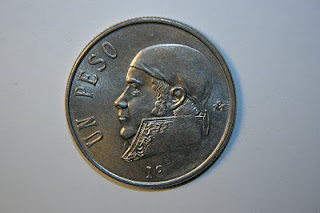 Aquí una antigua moneda de un peso con error en el año, que está incompleto.