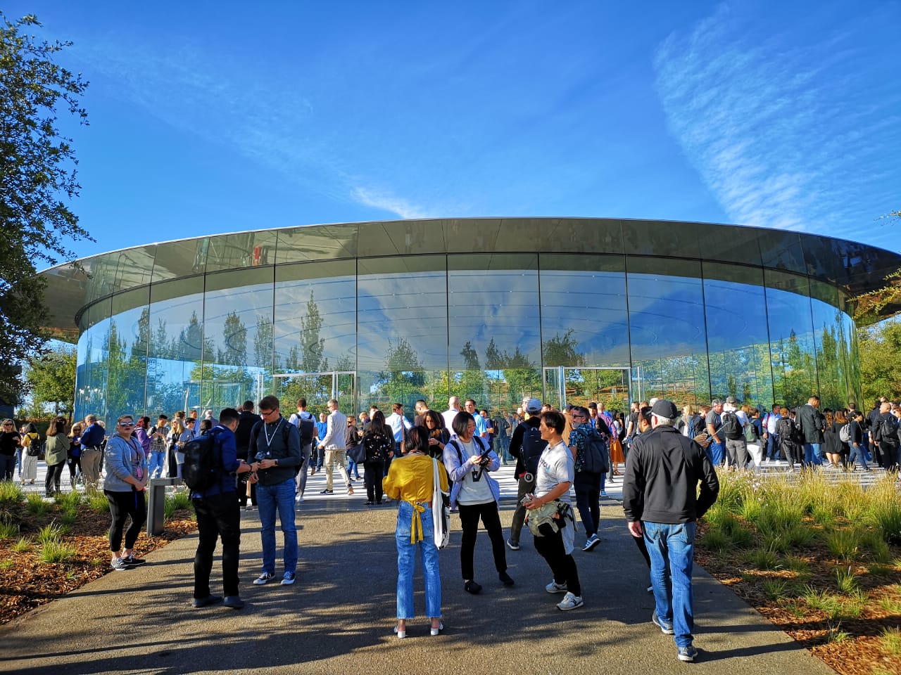 Así se ve el exterior del Auditorio Steve Jobs minutos antes de que comience la presentación.