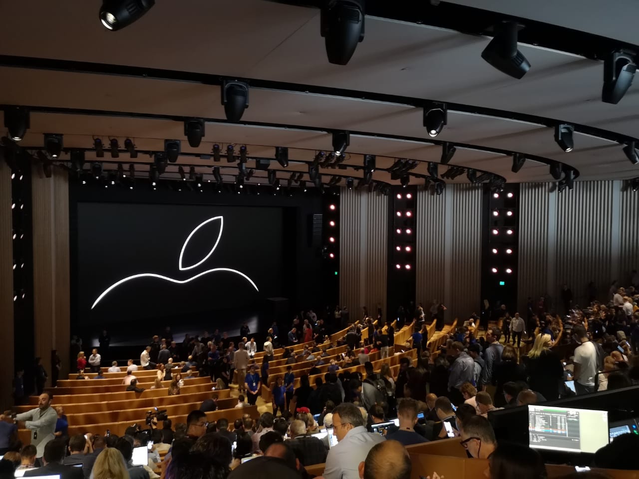 Fernando Santillanes ya está a punto de entrar al Auditorio Steve Jobs en el Apple Park. Así se ve previo a que Tim Cook salga al escenario.