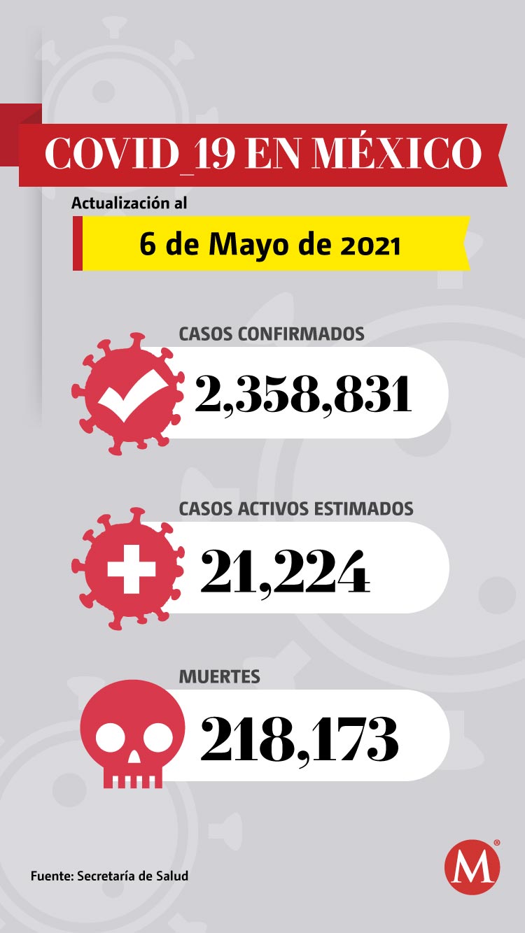 La Secretaría de Salud informó este jueves sobre las cifras de covid-19 en México, con corte al 6 de mayo, donde se confirmaron 166 decesos en las últimas 24 horas.