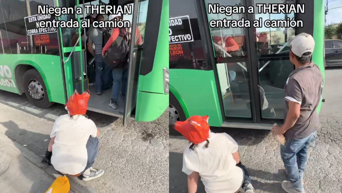 'Therian' intenta subir a camión urbano y chofer cierra puerta de la unidad en NL | VIDEO
