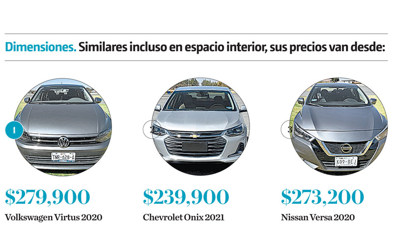 Estamos hablando de Chevrolet Onix, que por su ofrecimiento en motorización, desempeño y gadgets que se traducen en bienestar para los ocupantes, lo colocan como un gran exponente. Otro de ellos es precisamente Nissan Versa, que sin duda con esta nueva generación que ofrece mucho mayor seguridad para los ocupantes, nuevo diseño exterior y más espacio, es sin duda el rival a vencer. Por último y no menos importante es precisamente Volkswagen Virtus, un vehículo que llama mucho la atención por su bajo consumo de combustible, aunque en cuestión de motorización nos queda un poco a deber, pero por lo que respecta a sensación de manejo y habitabilidad es sin duda un gran exponente del segmento.