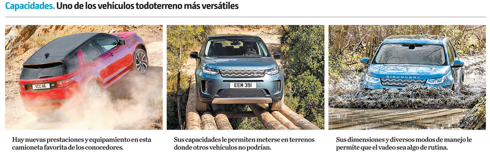 Land Rover Discovery combina un manejo todoterreno seguro con capacidad para todo tipo de condiciones climáticas, incluyendo una profundidad de vadeo de 600 mm, tracción en las cuatro ruedas y un sistema Active Driveline de segunda generación (dependiente de la potencia del motor). Terrain Response 2 detecta automáticamente la superficie y ajusta la entrega de par para que se adapte mejor a las condiciones, mientras que Advanced Tow Assist hace que la marcha atrás con un remolque (hasta 2.500 kg) sea más intuitiva y segura que nunca.