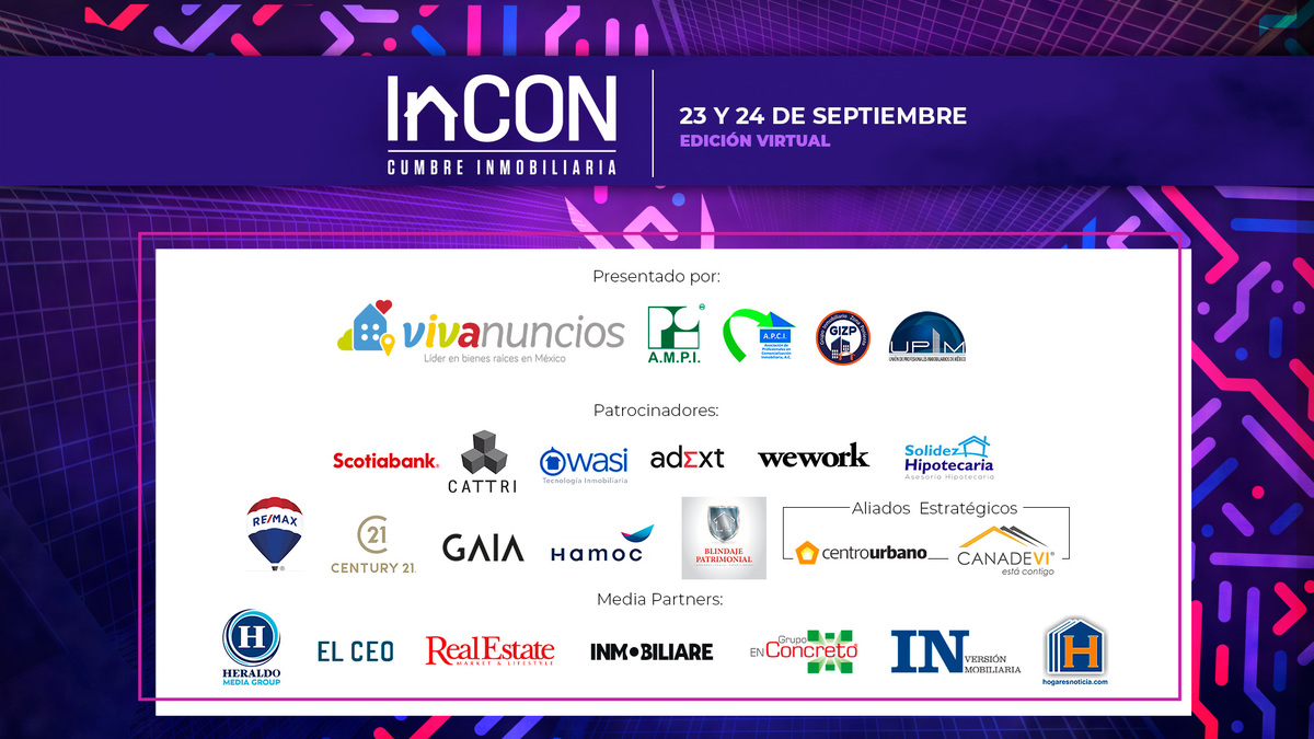 “La Cumbre Inmobiliaria InCON es el evento inmobiliario más grande que se lleva a cabo en México. Debido a la situación actual, tomamos la decisión de hacer un evento virtual, con el cual todos los asistentes podrán acceder a más de 20 conferencias y workshops, donde tendremos a speakers de talla internacional”.