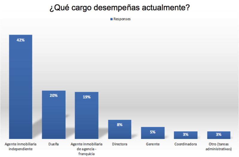 Por otro lado, el ejercicio reveló la oportunidad de crecimiento profesional que ofrece el sector inmobiliario a las mujeres. Los datos mostraron que, actualmente, 42% de quienes se desempeñan en esta actividad son agentes inmobiliarias independientes, mientras que el 20% es propietaria de una agencia.