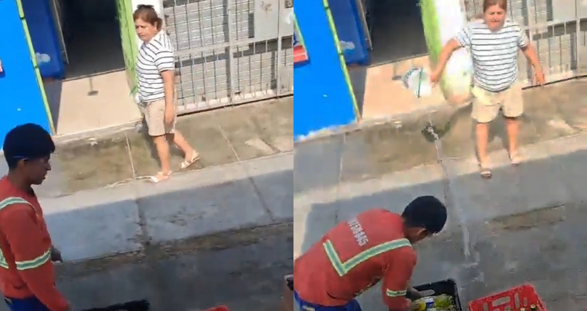 Mujer lanza agua a repartidor por descargar frente a su casa en Perú | VIDEO