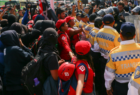 Dos defensoras de derechos humanos de la brigada Marabunta fueron detenidas y presuntamente golpeadas por elementos de Tránsito en una movilización este 1 de diciembre. -