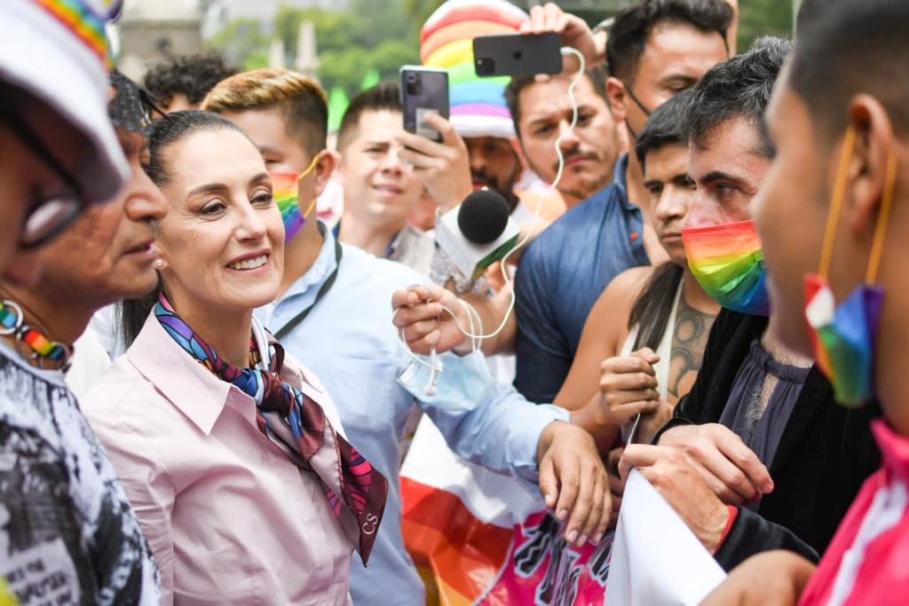 Sheinbaum recibe pliego petitorio durante la marcha del orgullo LGBT+