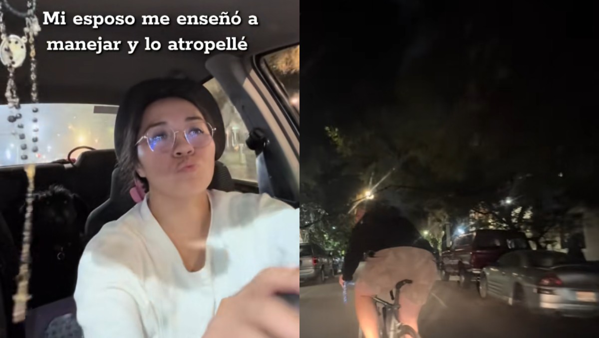 Hombre le enseña a manejar a su esposa y ella lo atropella; así fue el momento | VIDEO