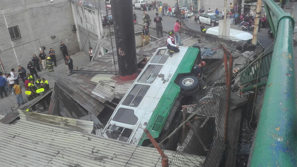 Microbús vuelca en Periférico Norte y cae sobre bodegas