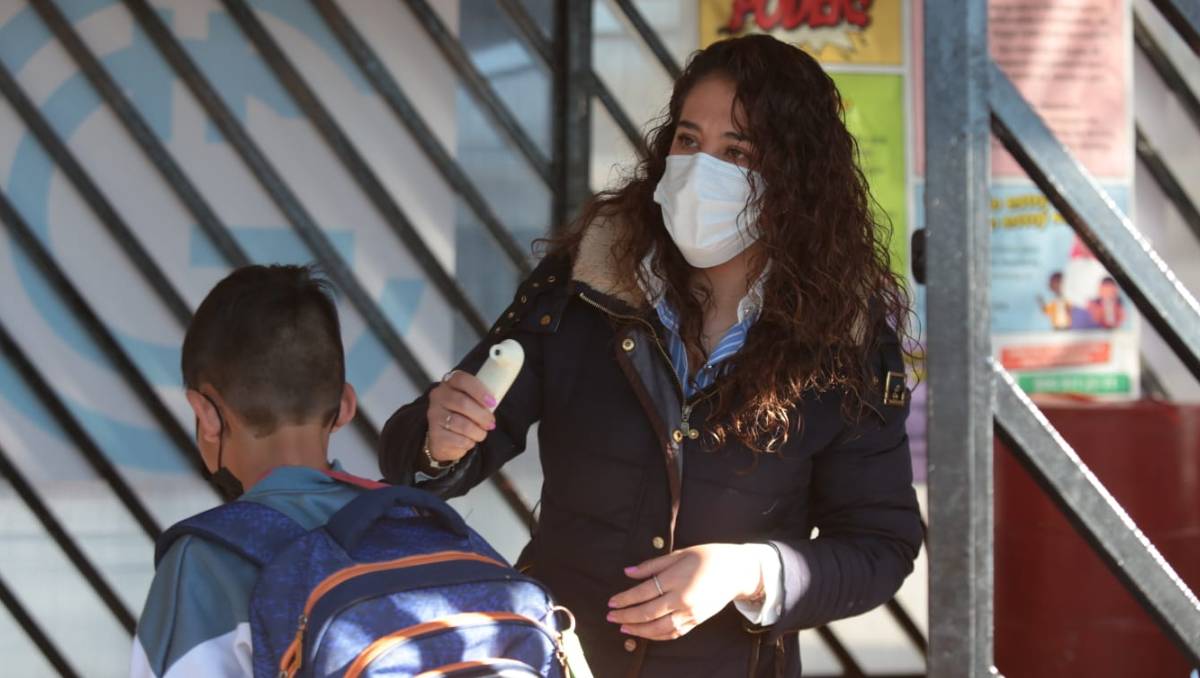Aunque la autoridad de salud indicó que no es obligatorio el cubrebocas, en las entradas de algunas escuelas se les solicita a los alumnos portarlo. -
