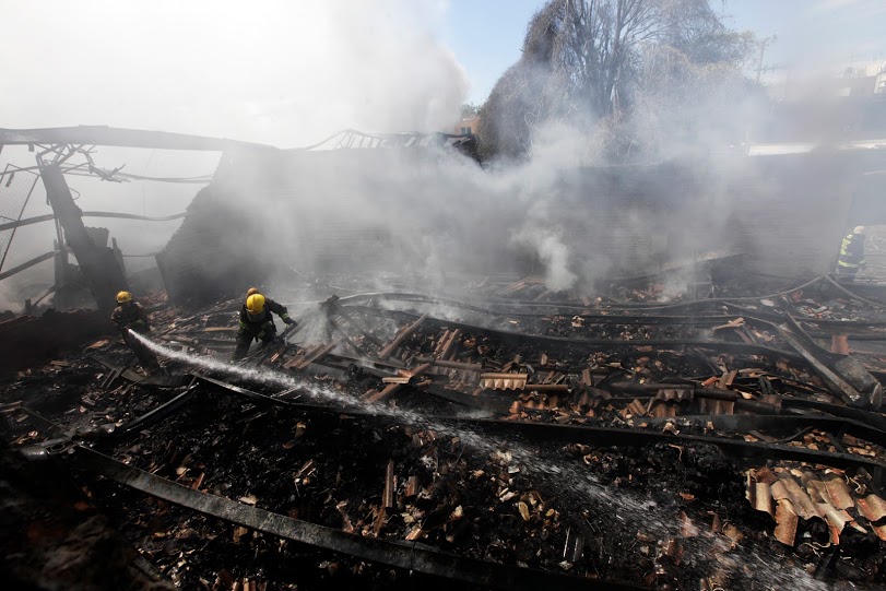 Bomberos de cuatro municipios combaten incendio de bodega de zapatos