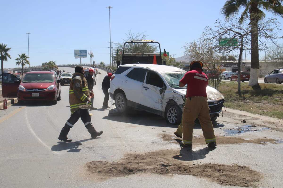Choque carambola entre cuatro vehículos dejó dos lesionados, uno menor de 17 años, y generó caos vial por casi una hora, con filas de hasta dos kilómetros. -