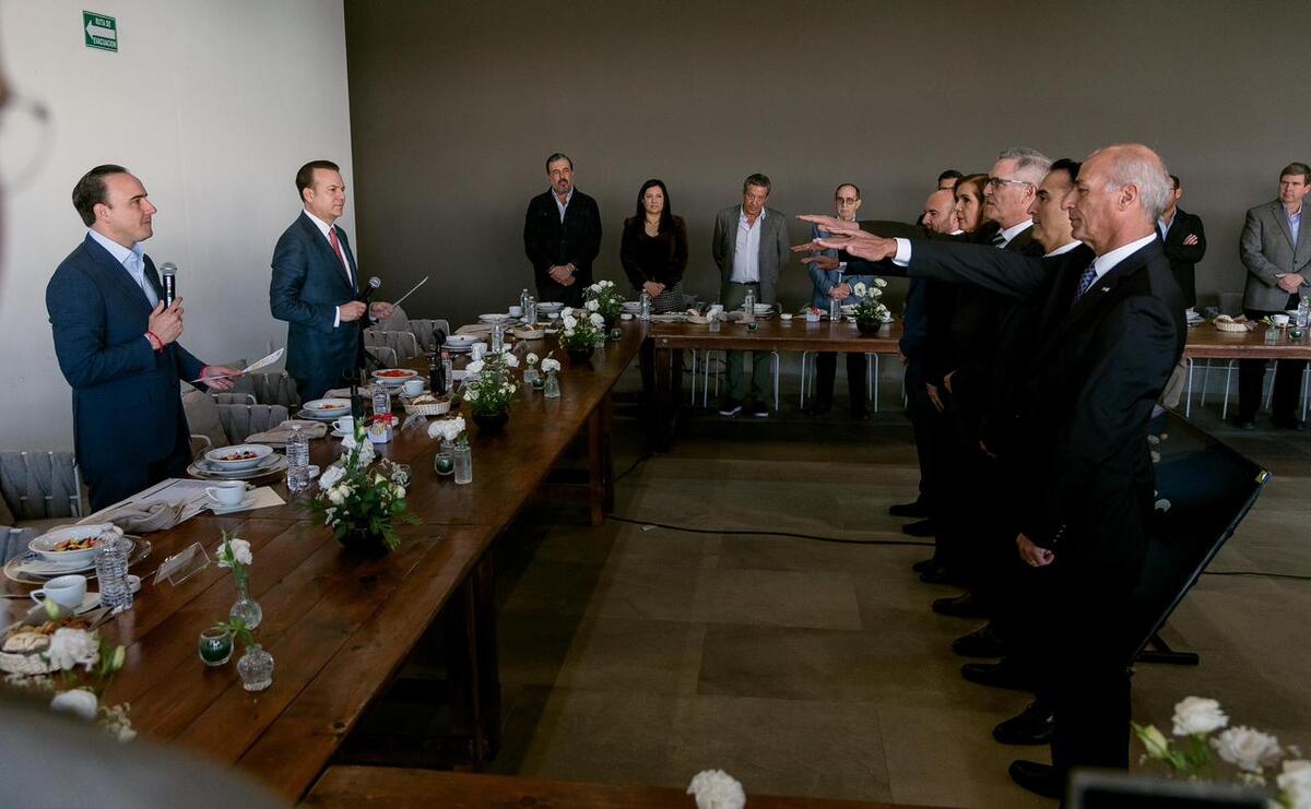 Los mandatarios encabezaron la toma de protesta de la nueva Mesa Directiva 2026-2028 del Consejo de Fomento Económico Laguna. -