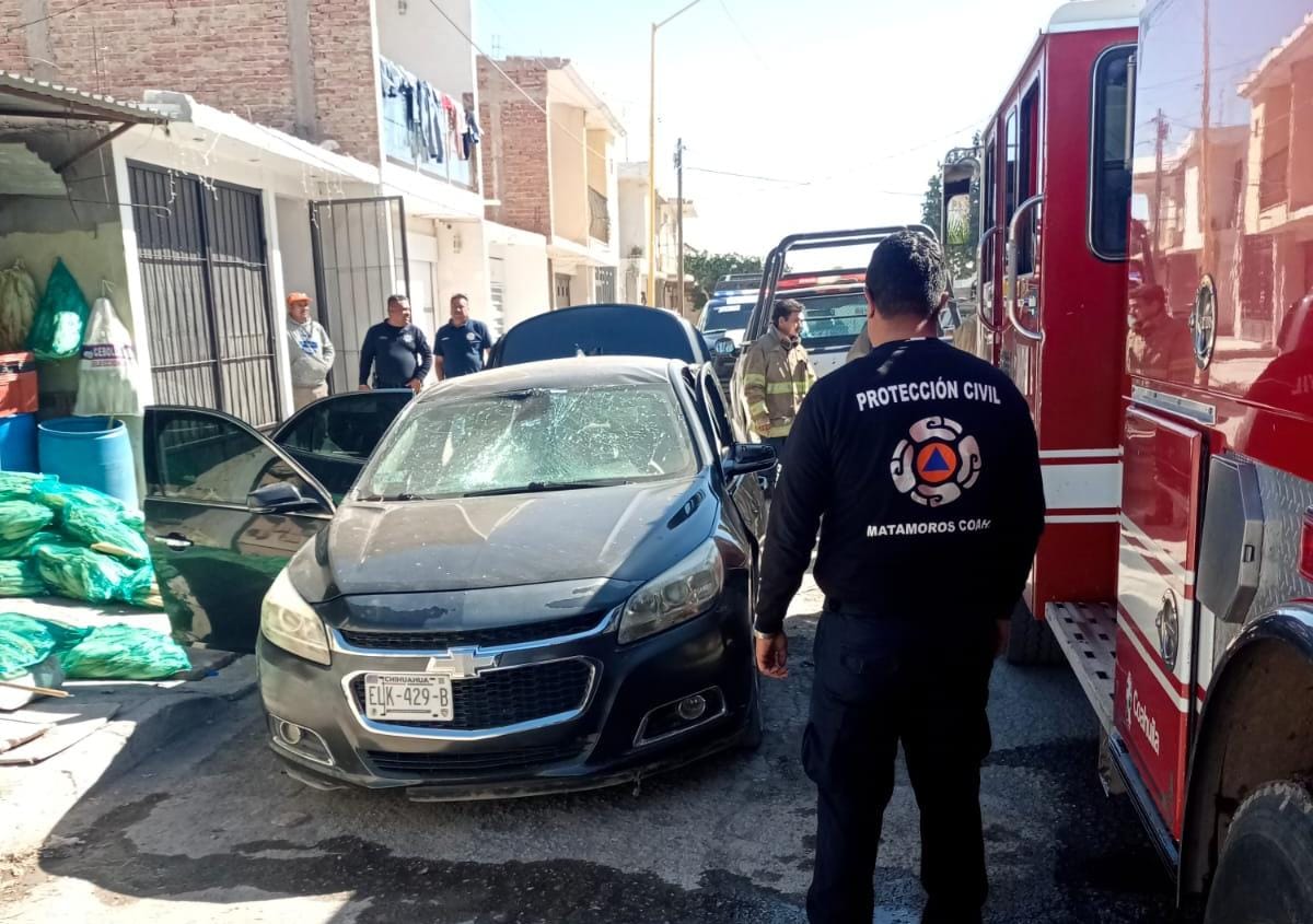 Explota tanque de gas dentro de un auto en Matamoros; hay un adulto mayor herido