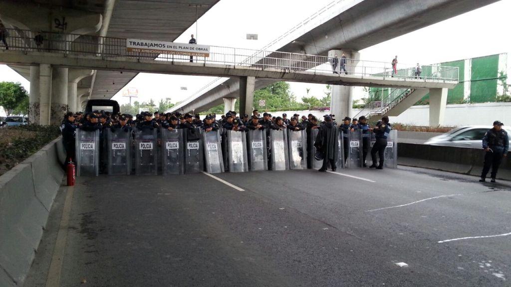 Después de permanecer por más de dos horas bloqueando la vialidad, a la altura del ex Toreo, los manifestantes decidieron regresar ante el cerco policiaco que les impidió continuar con su protesta. -