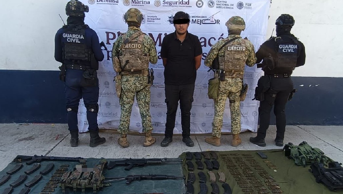 Detienen a 'El Cochiloco', presunto integrante del CJNG, en Michoacán; le aseguraron armas y c...