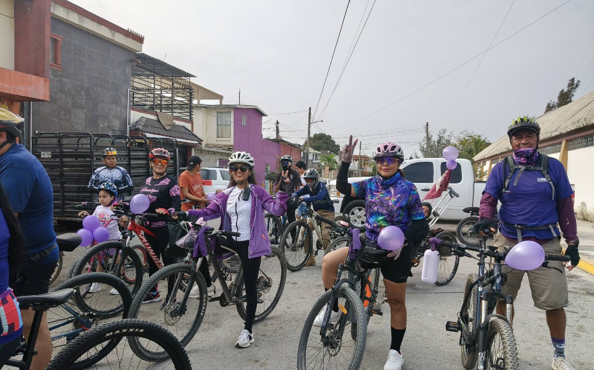 Ciclistas pintan de morado las calles de Altamira en rodada por el 8M