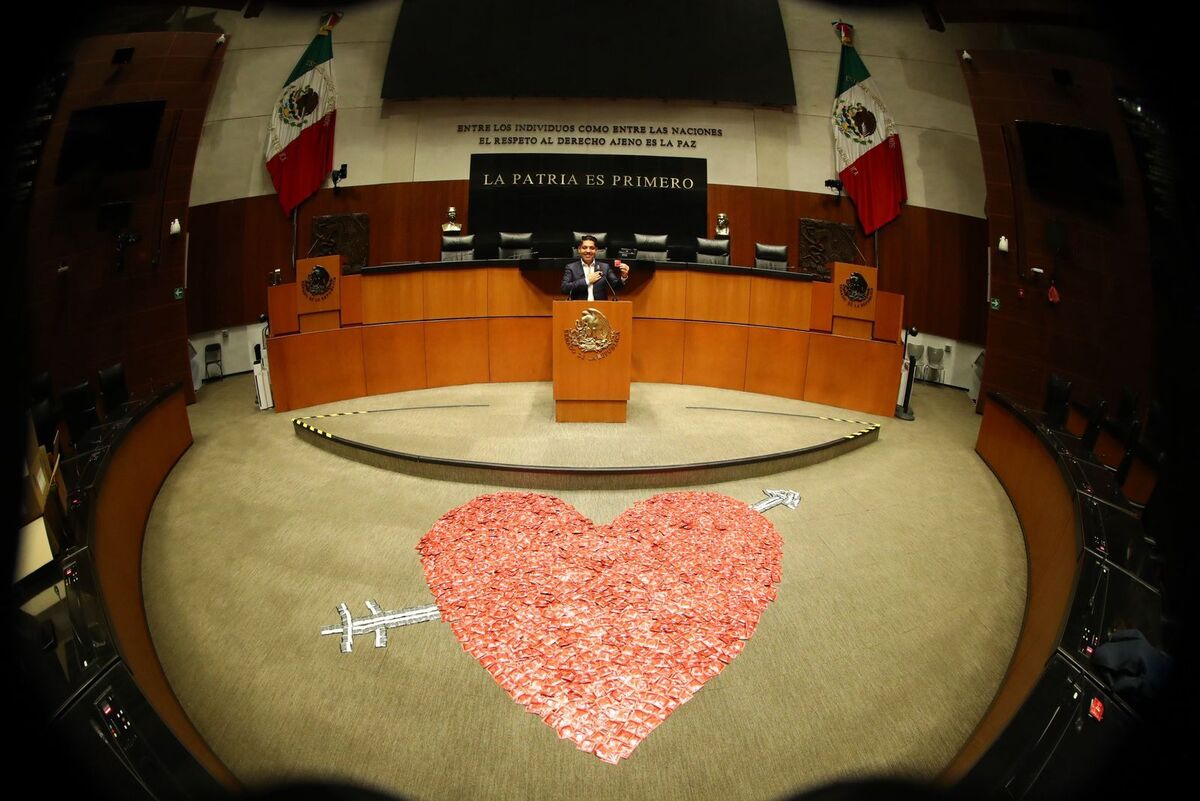 Senador morenista forma corazón con más de 2 mil preservativos para crear consciencia en el Pl...