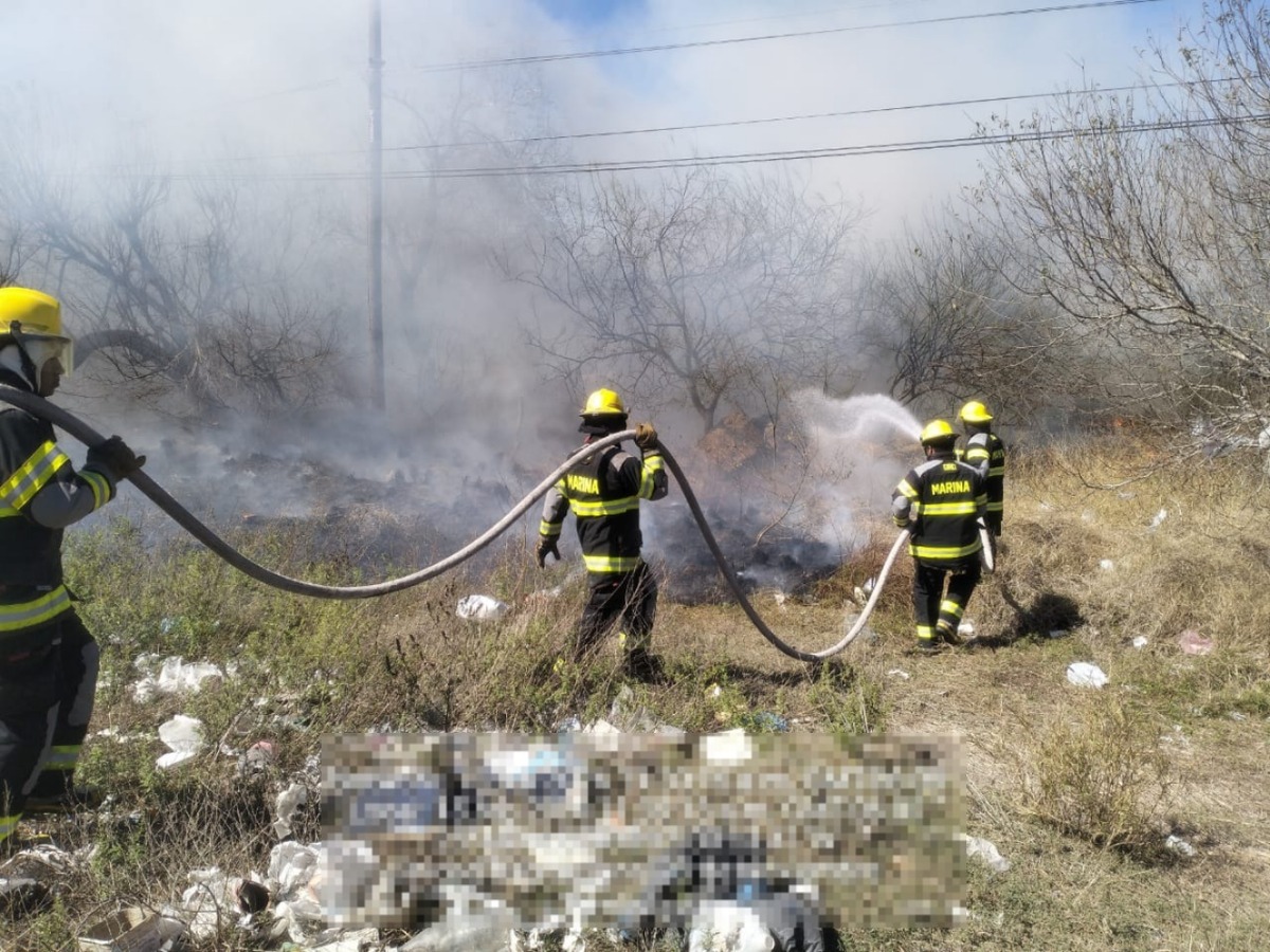 Marina y cuerpos de emergencia sofocan incendio de pastizal en predio cercano al sector naval ...