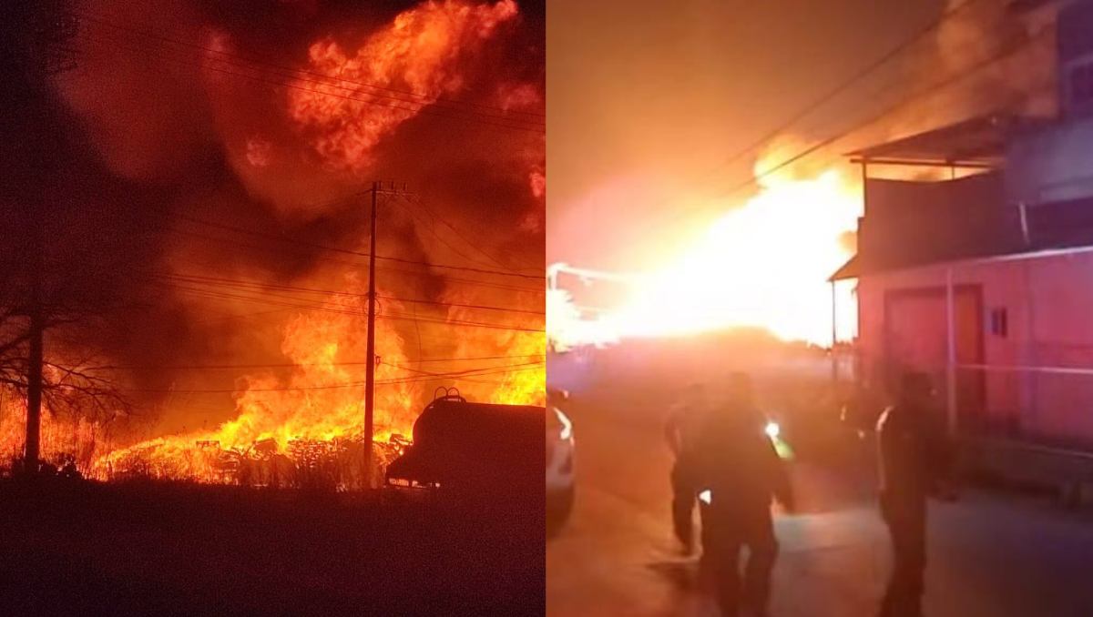 Incendio consume fábrica de tarimas y tres casas en Coyotepec; reportan apagón en la zona