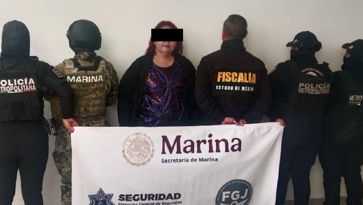 La detención se llevó a cabo por elementos de la Semar en apoyo de la Policía Metropolitana. La presunta líder criminal contaba con una orden de aprehensión, por lo que fue puesta a disposición del juez de la causa penal. -