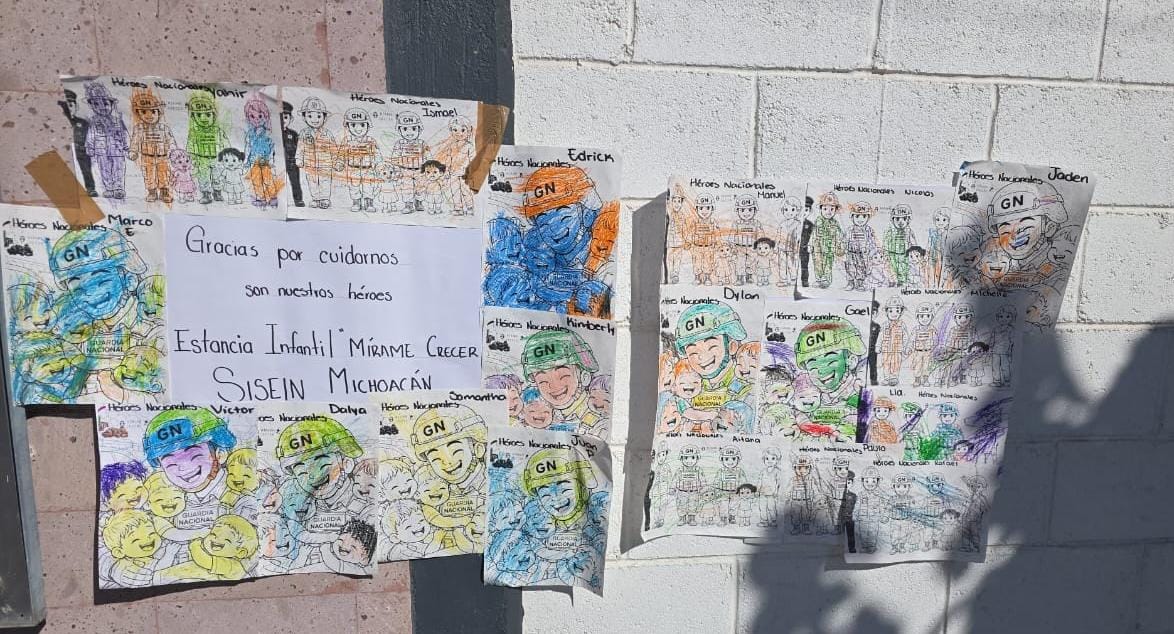 El personal de la Guardia Nacional agradeció el gesto y mantuvo en la entrada de sus instalaciones las ilustraciones de los menores. -