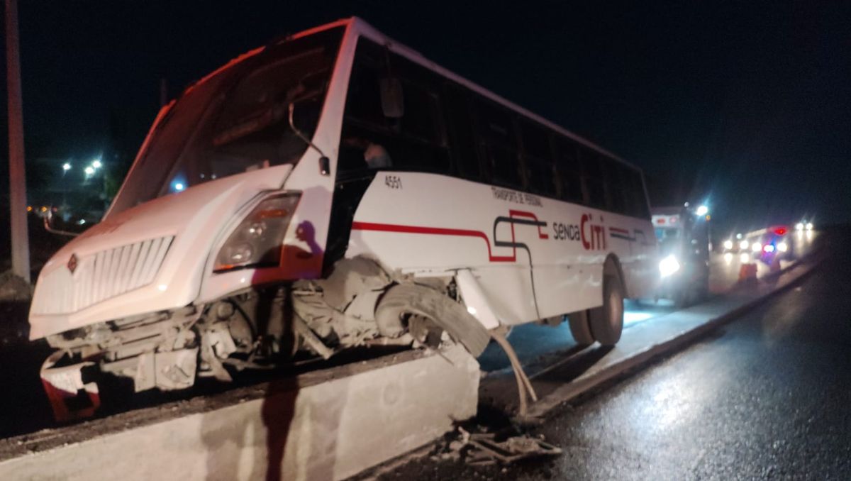 Camión de personal choca contra muro divisorio en carretera Apodaca-Juárez; hay 7 lesionados