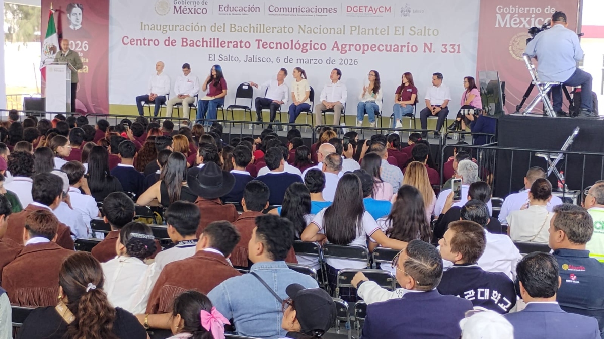 La presidenta de México inauguró el CBTA 331 en El Salto, ahí propuso reducir materias en preparatoria para combatir la deserción escolar -