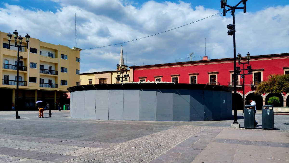 Retiran lámparas y barandales en Explanada de los Héroes previo a Marcha 8M en Monterrey