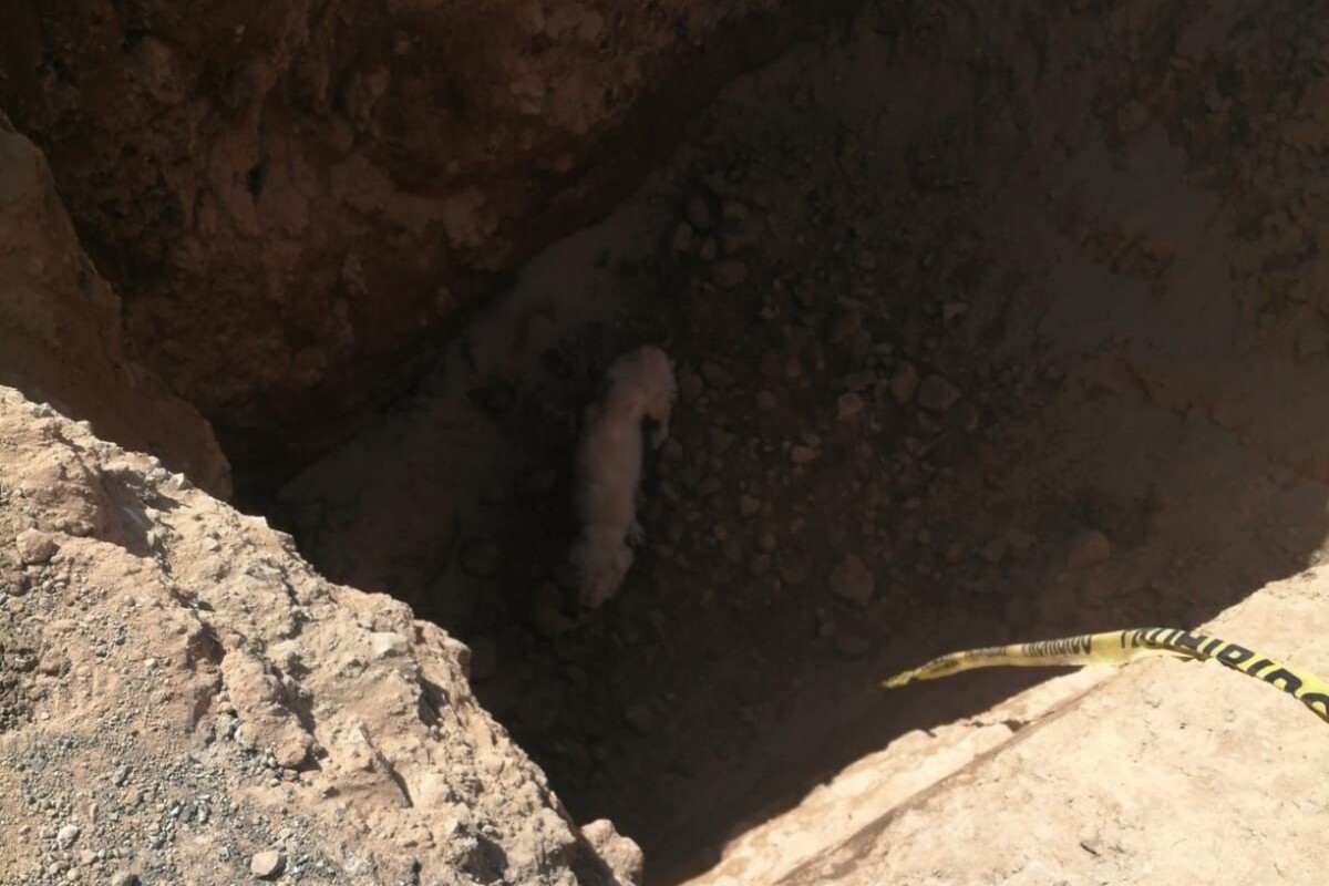 Rescatan a perrito que cayó en excavación de obra pluvial en Mineral de la Reforma
