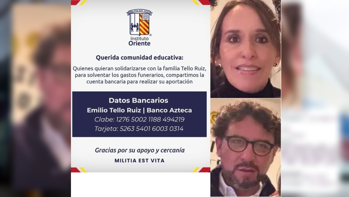 Padres de familia del Instituto Oriente, anunciaron una colecta para apoyar en los gastos funerarios y personales de Alexandro Tello y Karina Ruiz Ruiz. -