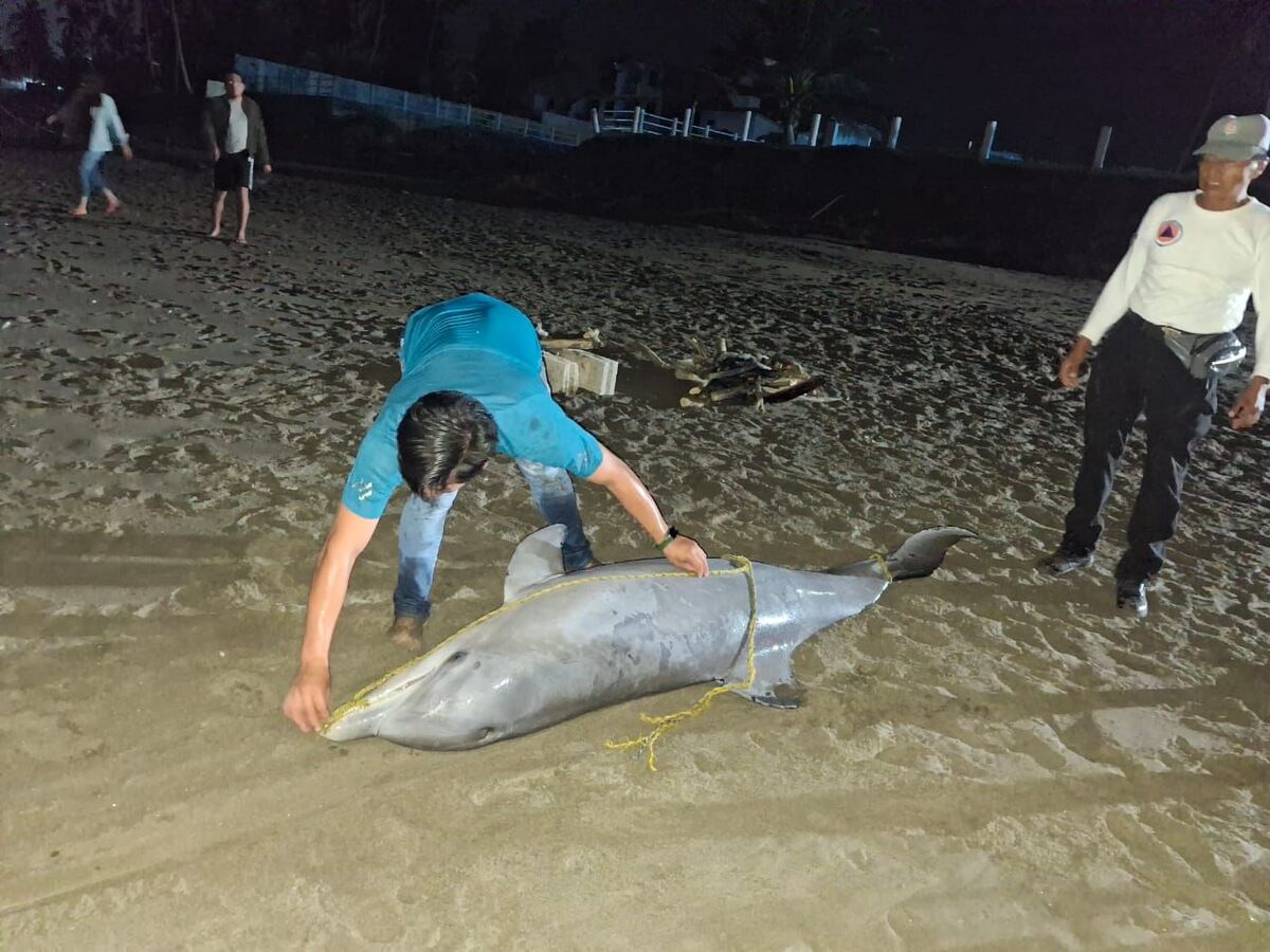 Un delfín hembra fue localizado sin vida en playas de Tecolutla, el tercer mamífero marino hallado muerto en lo que va del año en la zona de Costa Esmeralda. -