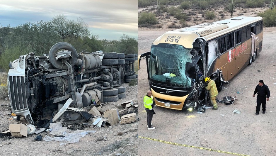 Choque entre autobús y tractocamión deja cuatro muertos y 25 heridos en carretera Sonoyta–Cabo...