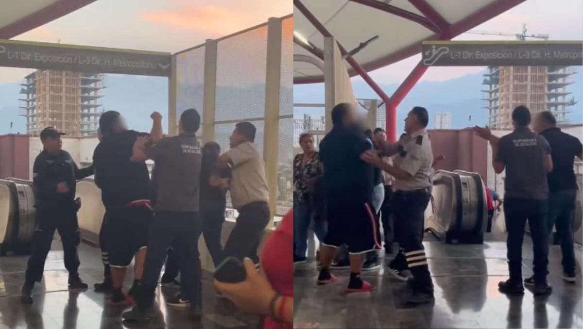 Usuarios del Metro que se encontraban en la estación Félix U. Gómez captaron el momento de la pelea. -