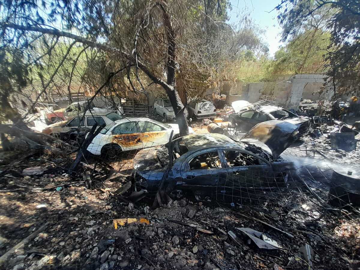 El incendio sucedió en la colonia Braulio Fernández Aguirre, dejando como saldo cuantiosos daños materiales, entre ellos al menos cinco vehículos calcinados. -