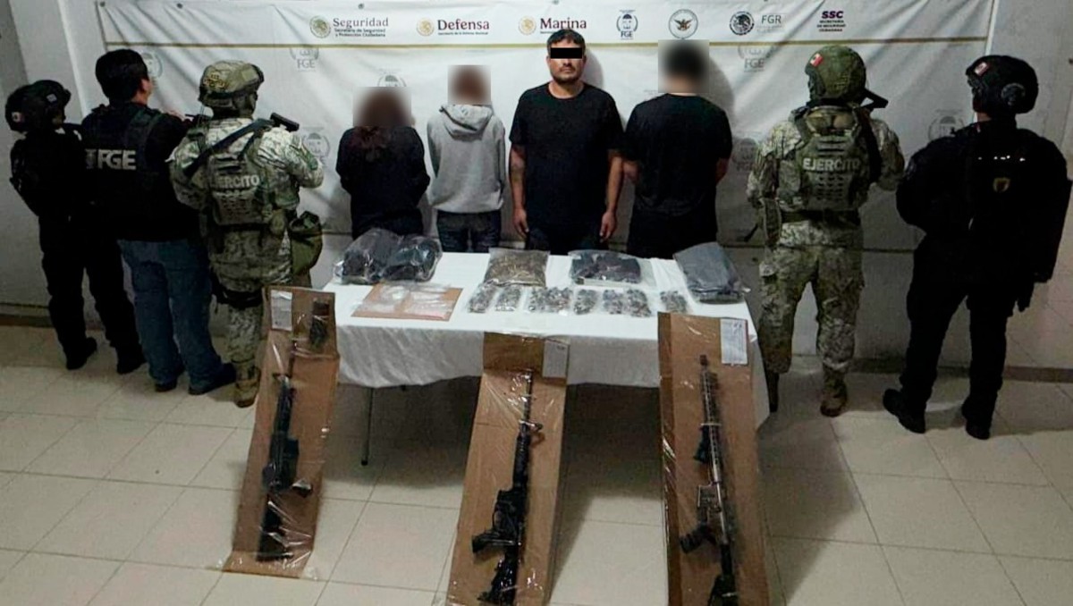 Durante la detención, se aseguraron armas largas consideradas de uso exclusivo de la Secretaría de Defensa. -