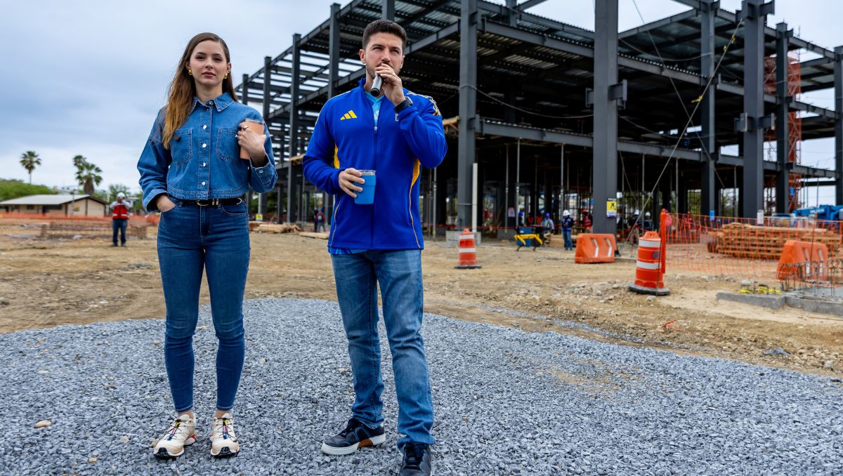 Samuel García y Mariana Rodríguez supervisan obras en Distrito Infantil de NL