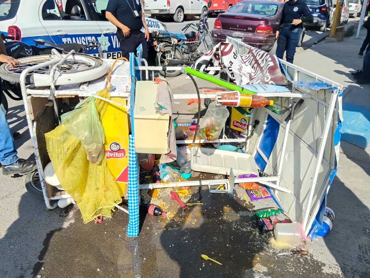 Un menor de 15 años de edad se quedó sin su negocio rodante y sin la mercancía que traía para la venta, tras ser impactado a bordo de su motocicleta. -