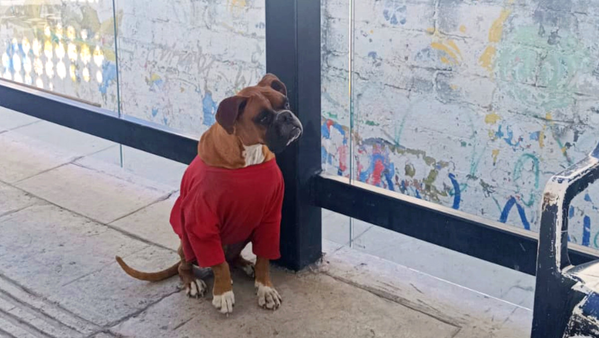 'Chato', el perrito bóxer que se convirtió en guardián de un paradero del RUTA en Puebla