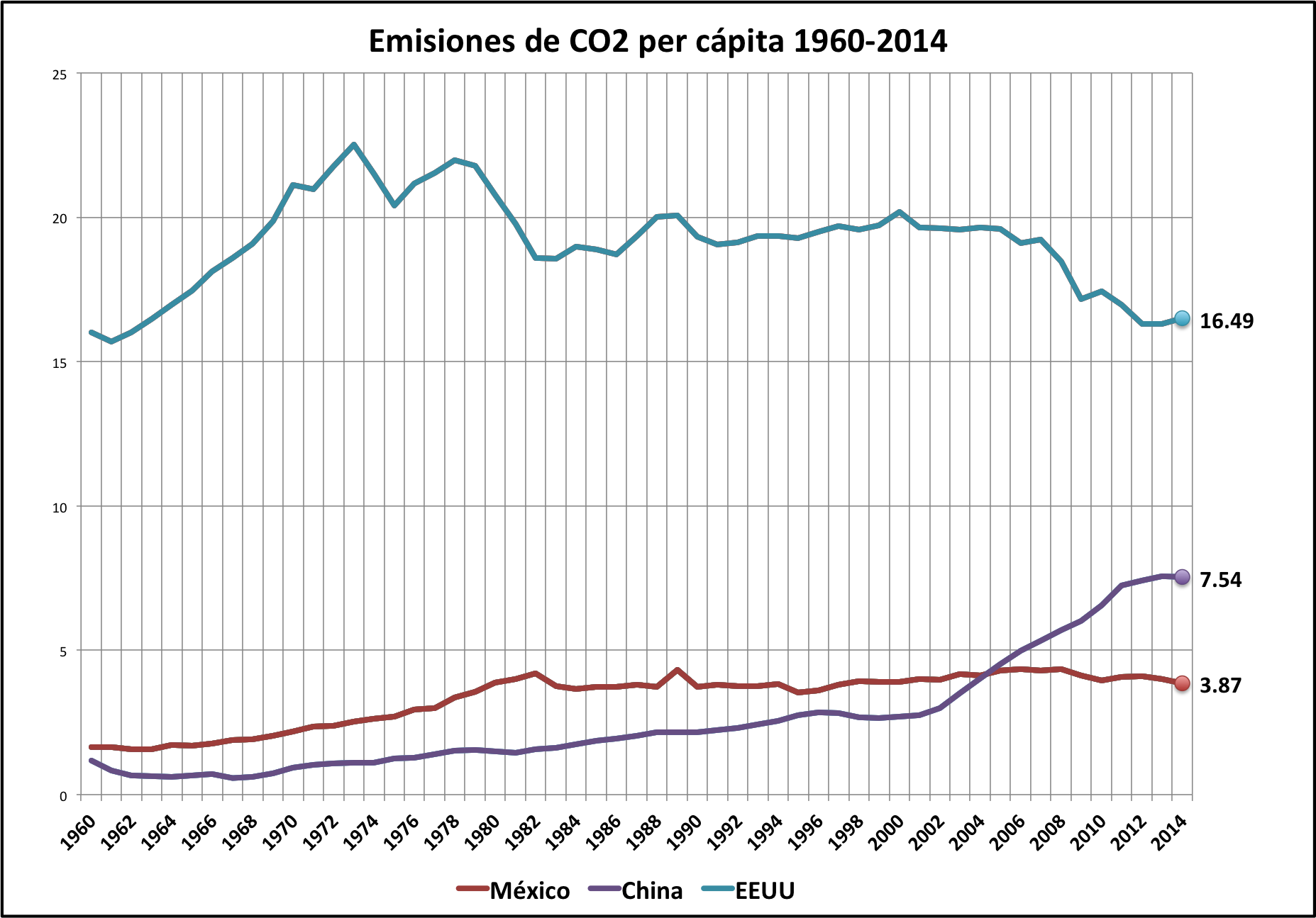 En números redondos, cada mexicano es responsable de la emisión al aire de unas cuatro toneladas de CO2 equivalente por año, contra un ideal internacional de dos toneladas por año. Datos equiparables señalan que en 2014 un mexicano emitía 3.87 toneladas anuales de CO2 equivalente; cada chino, 7.54 toneladas; cada estadunidense, 16.5 toneladas. Pero la huella de carbono de cada ciudadano del diminuto Qatar era de ¡45.5 toneladas!