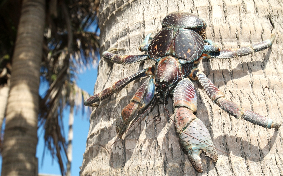 El cangrejo de los cocoteros es la especie de cangrejos más grande de su especie y es muy conocido por su habilidad de abrir cocos con sus fuertes pinzas para así poder alimentarse de ellos.