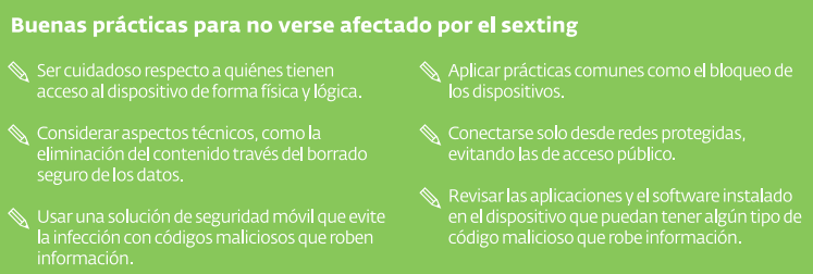 A pesar de que el experto hizo hincapié en las medidas higiéncas, esta práctica conlleva otras riesgos, por lo que Argentina Cibersegura lanzó en una infografía una serie de recomendaciones, dirigidas especialmente a los adolescentes para realizarla de la mejor manera posible, sin poner en riesgo su integridad.