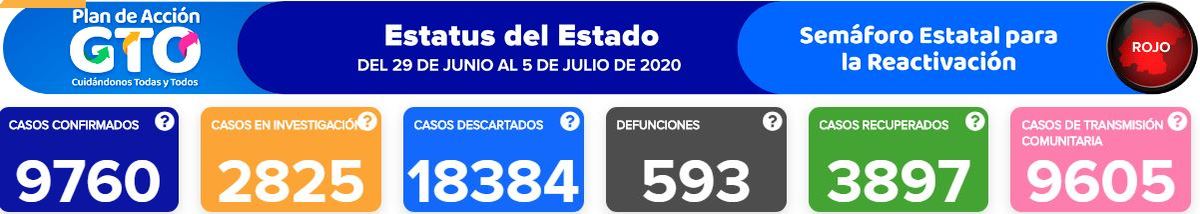 De acuerdo a información proporcionada por la Secretaría de Salud a través de su página oficial coronavirus.guanajuato.gob.mx.