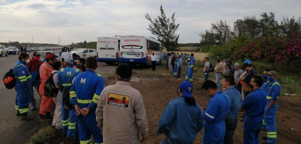 Protección Civil de Altamira interceptó tres autobuses con trabajadores del corredor industrial provenientes de Mataredonda, Veracruz, debido a que ninguno de ellos portaba cubrebocas durante el traslado de personal e iban a su máxima capacidad.