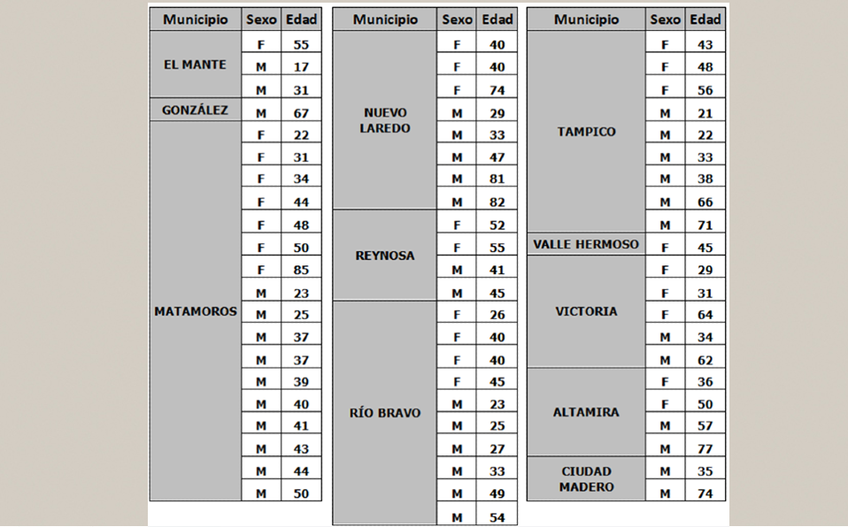 El fallecimiento corresponde a un hombre de 83 años de edad originario de Nuevo Laredo y con antecedentes de hipertensión arterial sistémica.