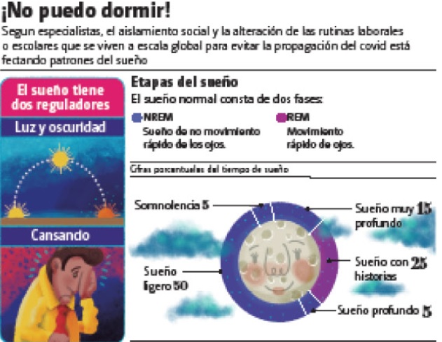 En entrevista, el doctor Ulises Jiménez, responsable de la Clínica de Trastornos del Sueño de la UNAM, explicó que las personas han dejado de dormir por las medidas del distanciamiento social, ya que “hemos perdido la necesidad de levantarnos para ir al trabajo y a la escuela”.