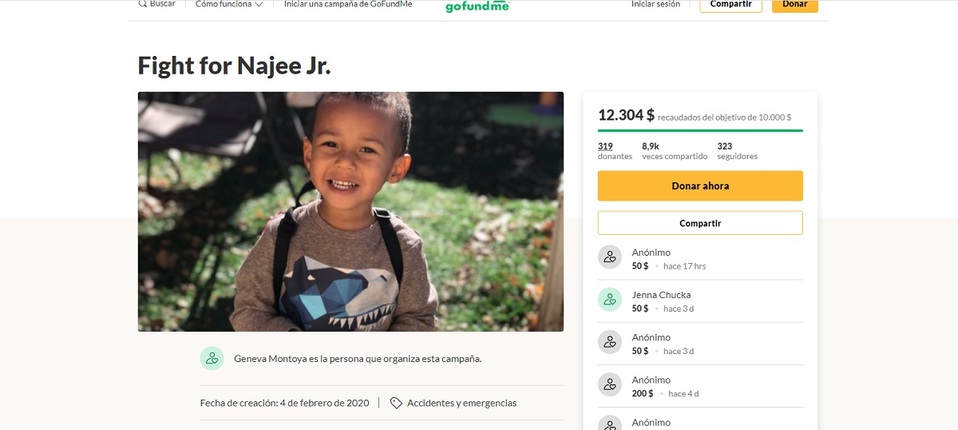 Cuando el niño empeoró y fue internado. La familia abrió una página en Gofundme para pagar su estancia en el hospital. “Mi hijo sufrió una lesión cerebral anóxica relacionada con una convulsión que pudo haber ocurrido por fiebre o por el cierre de las vías respiratorias”, escribió en el sitio.