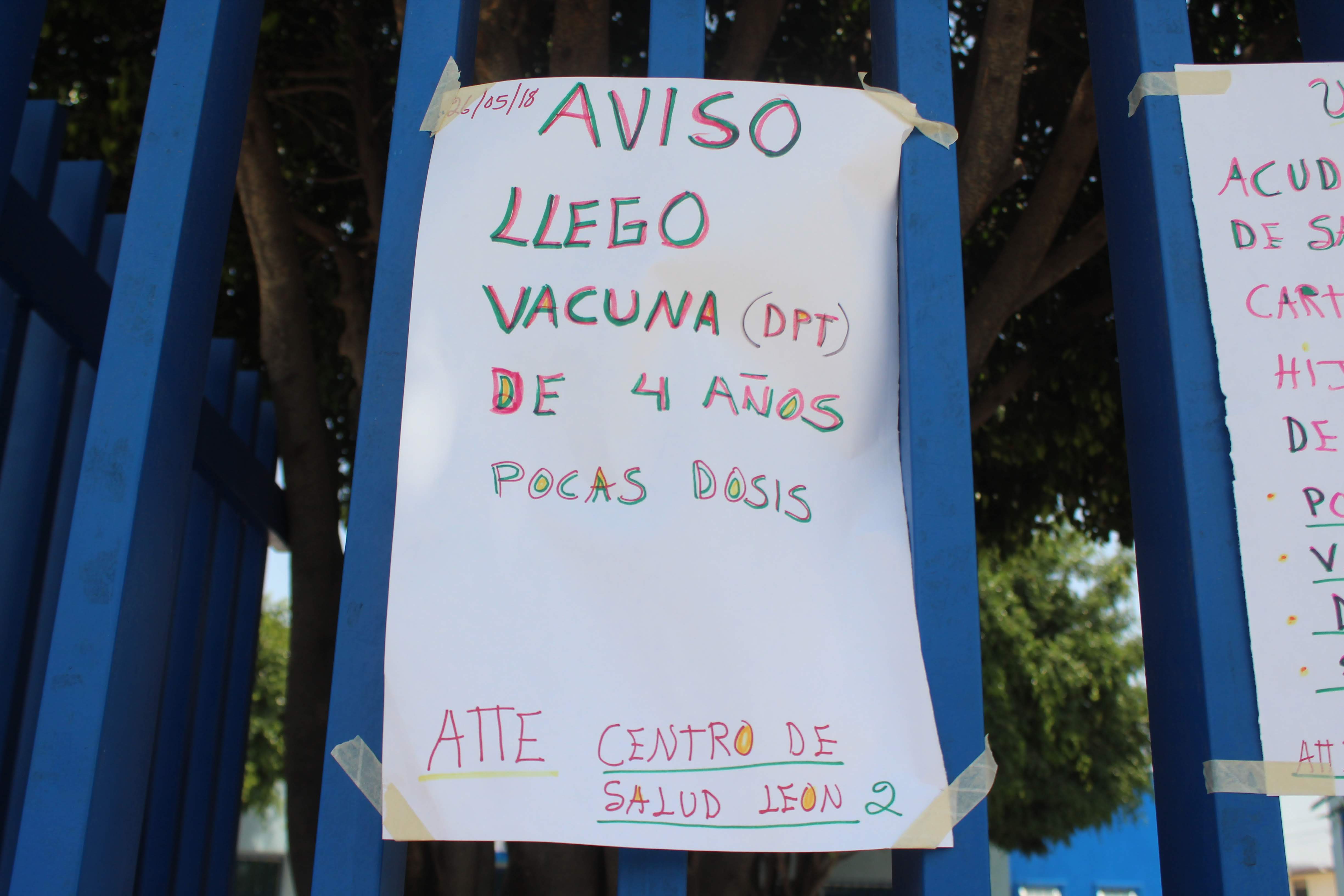 En la Unidad Médica de Atención Primaria a La Salud (UMAPS) León ll, según testigos, no se contaba con la vacuna desde hace algunos meses, y el pasado 26 de mayo del 2018 se colocó un anuncio a las afueras del Centro de Salud informando que ya había vacunas pero pocas dosis.