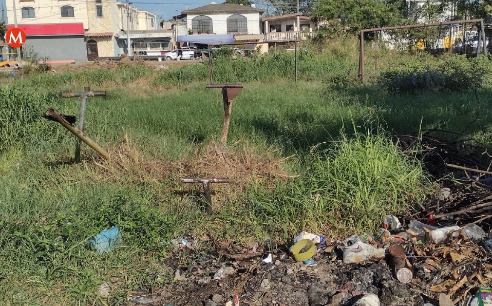 El área verde de la Colonia Altamira se encuentra entre la maleza y agua de drenaje; los juegos infantiles que en su momento generaban una diversión para los niños, están prácticamente acabados por la falta de atención.